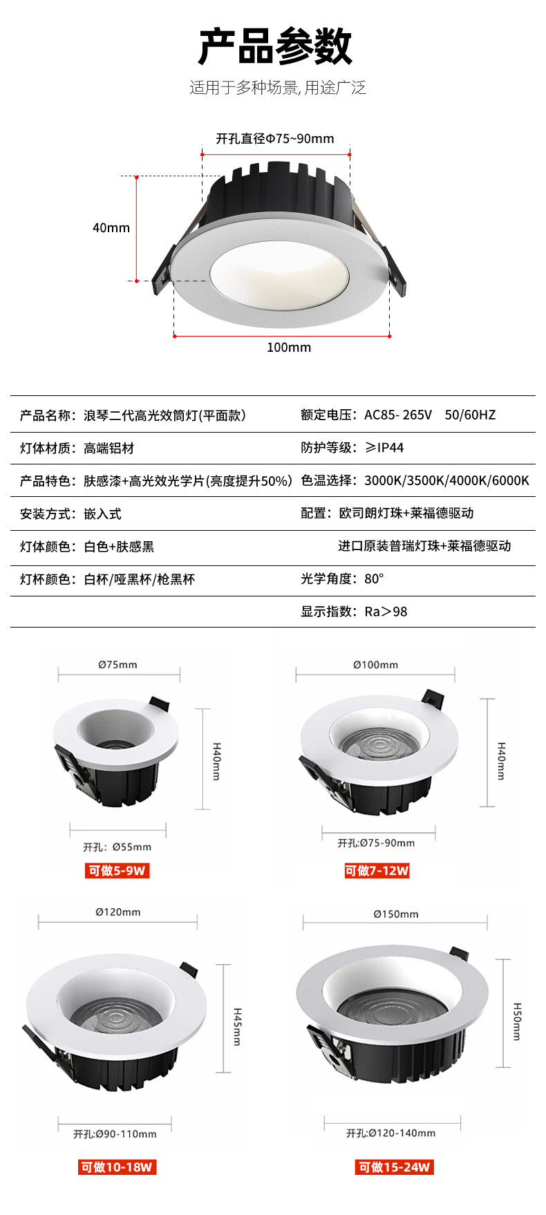 飞宇诺LED超大开孔260mm嵌入式筒灯