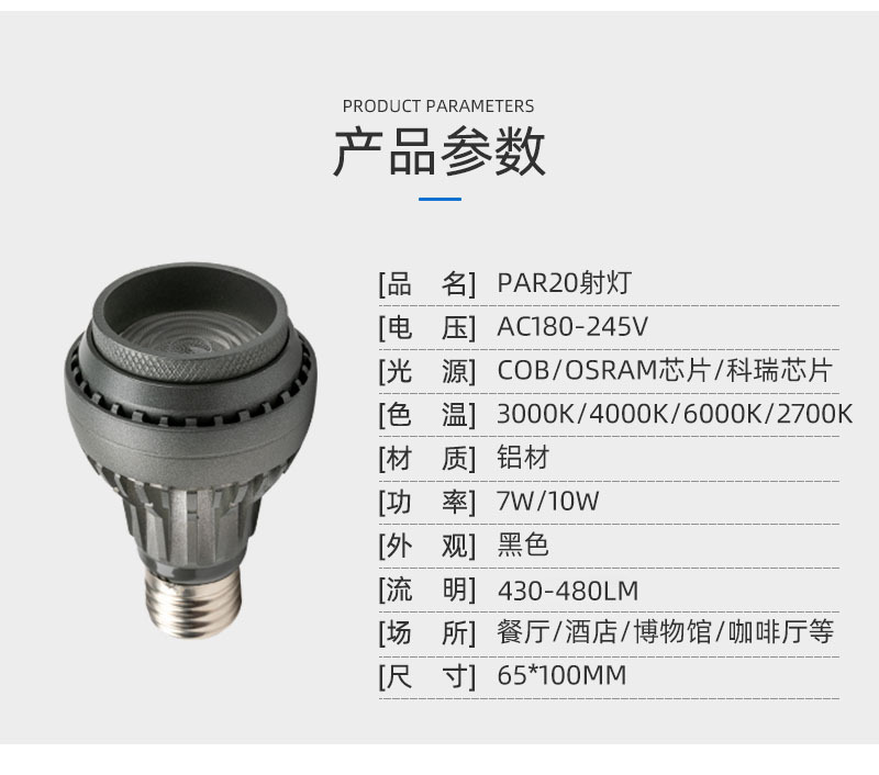 产品描述:飞宇诺 PAR20射灯调焦灯泡 FC-PAR0303-04
